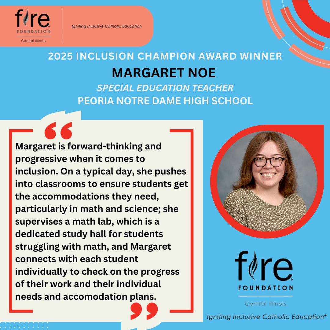 Congratulations to Ms. Margaret Noe, who received the 2025 Inclusion Champion Award from the FIRE Foundation of Central Illinois (@firefoundationci), at school today from Interim Executive Director Jay Percell and Fire Foundation board member (our very own) Mrs. Krieg-O’Brien!! As part of her award, Ms. Noe received $500 to use in her classroom to promote...Read More