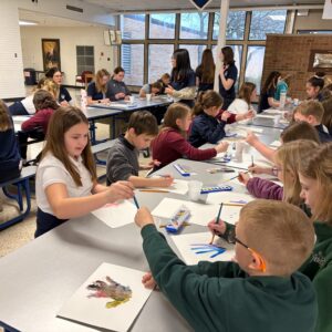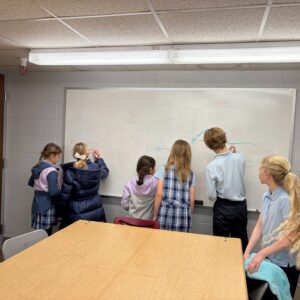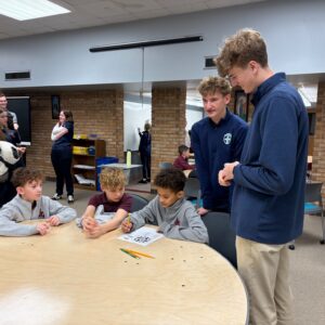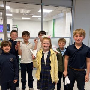Sr. Agnes Paulina and some of her biomedical science students kicked the morning off with awesome chemistry demonstrations. Then, the 4th graders moved to different stations filming their own movies, creating a watercolor mural, completing math crosswords, and competing to build the best paper airplane!! Big thank you to our visitors for such a dynamic morning!