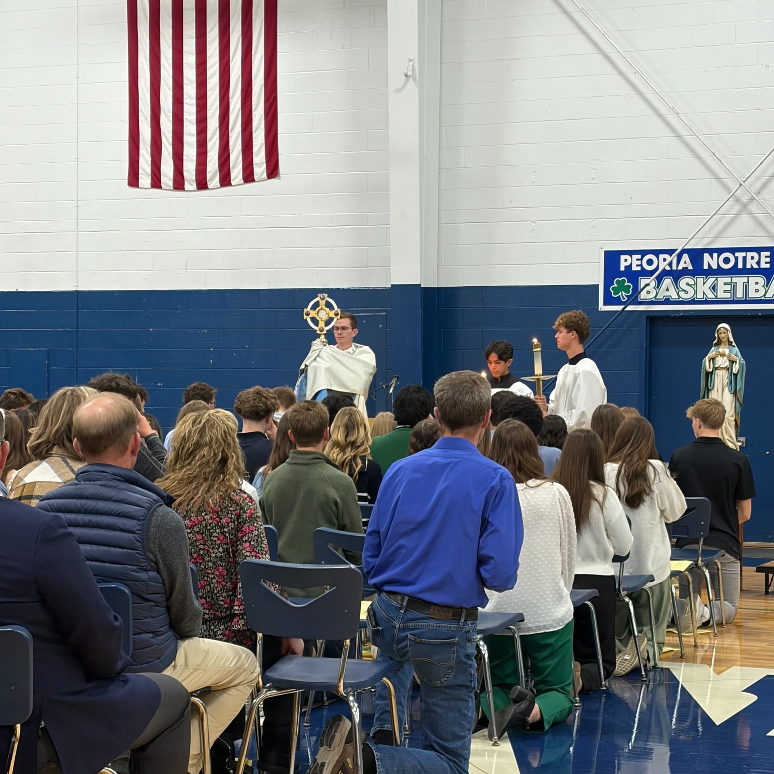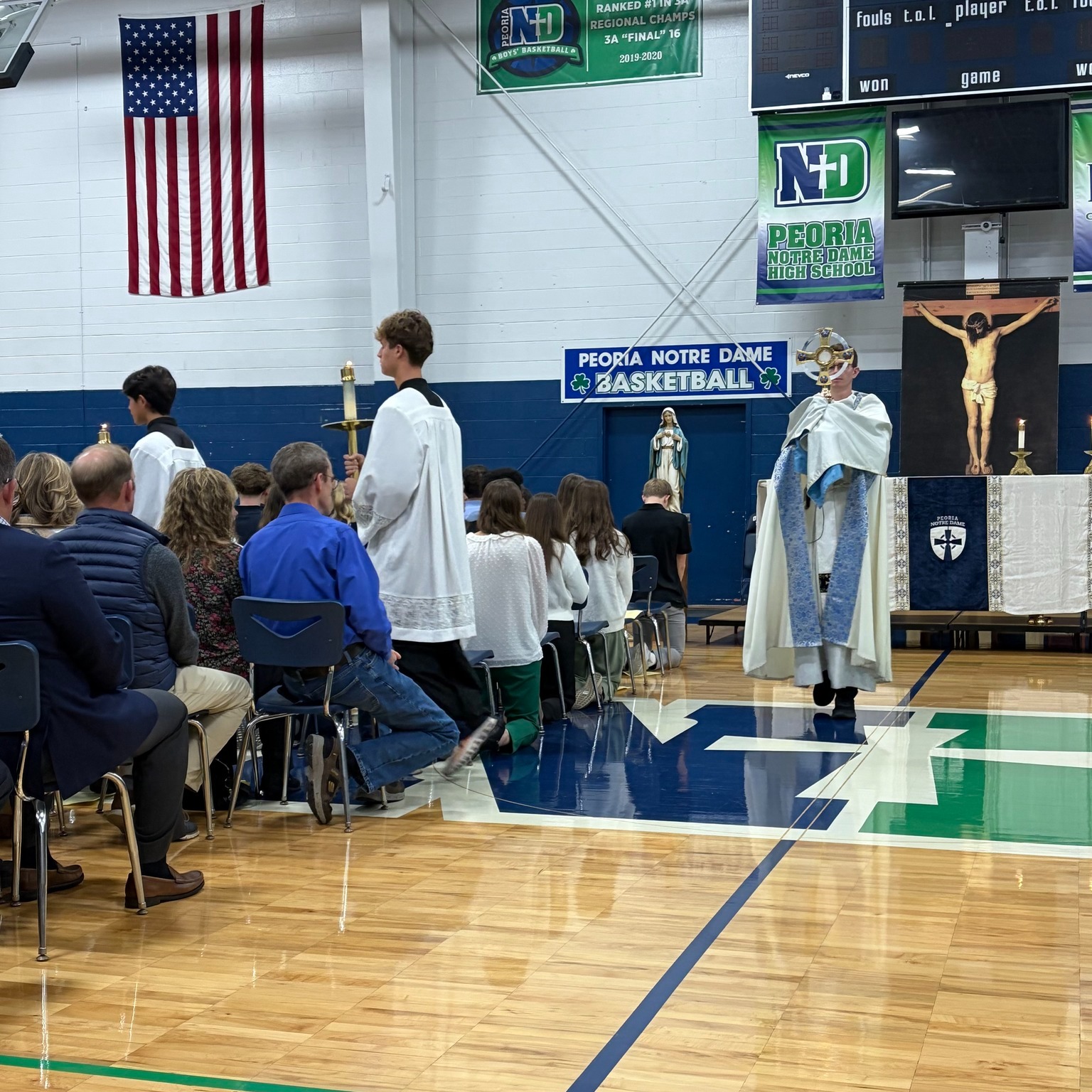 We had a very special morning! We celebrated All School Mass and Adoration as a school community. As part of the 150th Anniversary of the Diocese of Peoria (@peoriadiocese) , a traveling monstrance is making its way around the diocese, and this week, the monstrance is at PND! It was a wonderful way for our students, staff, parents, and guardians to glorify our Lord together! Special thanks to Fr. Daniel & Fr. Chase for concelebrating Mass!