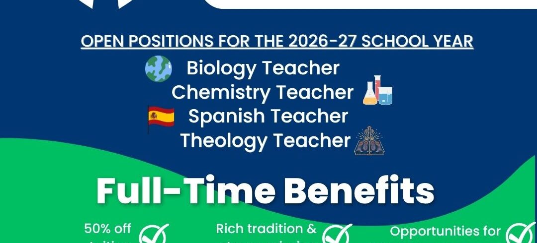 Join in the mission of forming disciples in a community of Catholic faith, knowledge, and service at Peoria Notre Dame! We have four openings for the 2026-27 school year in biology, chemistry, Spanish, and theology. More information, including specifics on benefits, can be accessed on our...Read More