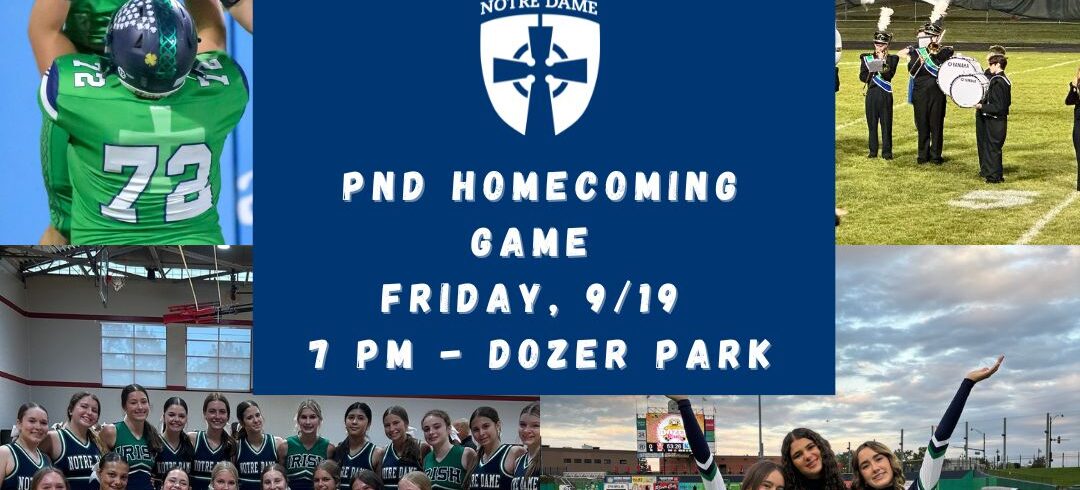 The Peoria Notre Dame Irish Football team takes on the Richwoods Knights in an exciting Homecoming game on Friday night! Friday, September 19, 2025 Dozer Park- 730 SW Jefferson Ave, Peoria, IL 61605 (Paid parking available) Gates will open at 5:30 PM. Kickoff is at...Read More