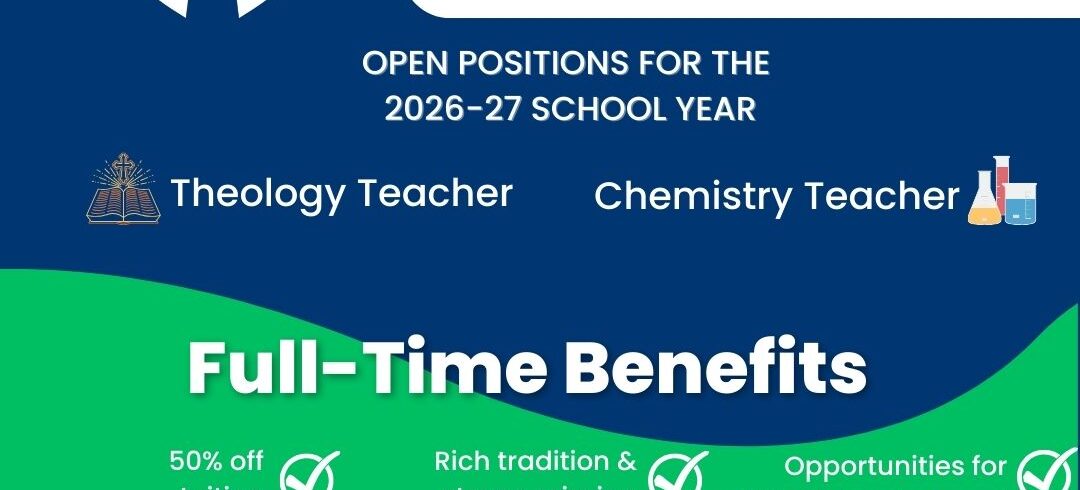 Join in the mission of forming disciples in a community of Catholic faith, knowledge, and service at Peoria Notre Dame! We have two openings for the 2026-27 school year for a theology teacher and a chemistry teacher. More information, including specifics on benefits, can be...Read More
