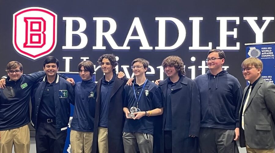 Congratulations to the PND Scholastic Bowl for finishing 2nd at the PAWAC Tournament at Bradley University Saturday, November 8th. The Irish defeated East Peoria, St. Thomas More, and Richwoods on their march to the Championship. Special congratulations to Liam Hamilton, who earned a spot on the All-Tournament Team! (Pictured from the left to right in the first photo): Noah James, Matthew Bennett, Owen Robotham, Sebastien Robotham, Liam Hamilton, Nathaniel Howard,...Read More