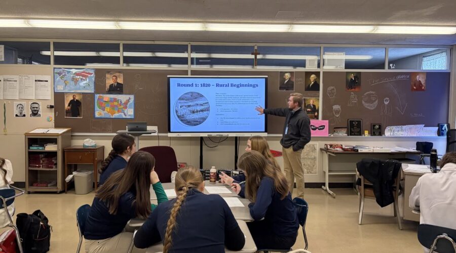 In United States History with Mr. Snook and Mrs. Wiggers, students took part in The Urban Game, a hands-on drawing activity that helps students understand how small, agrarian towns transformed into large urban centers as a result of the Industrial Revolution. The game follows the development of an American town from 1820 to 1920. Students begin with a basic map with a few landmarks and then after several rounds of...Read More