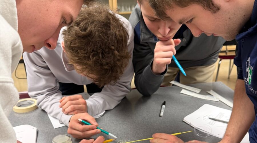 AP Biology students in Ms. Cassidy’s class conducted a bacterial transformation lab this week. On Wednesday, students began transferring a gene for Green Fluorescent Protein (GFP), originally from a jellyfish, into bacteria to learn how genes move from one organism to another. When successful, the bacteria glow a brilliant green under ultraviolet light. Today, students continued the lab and saw some of the finished samples already glowing green!Read More