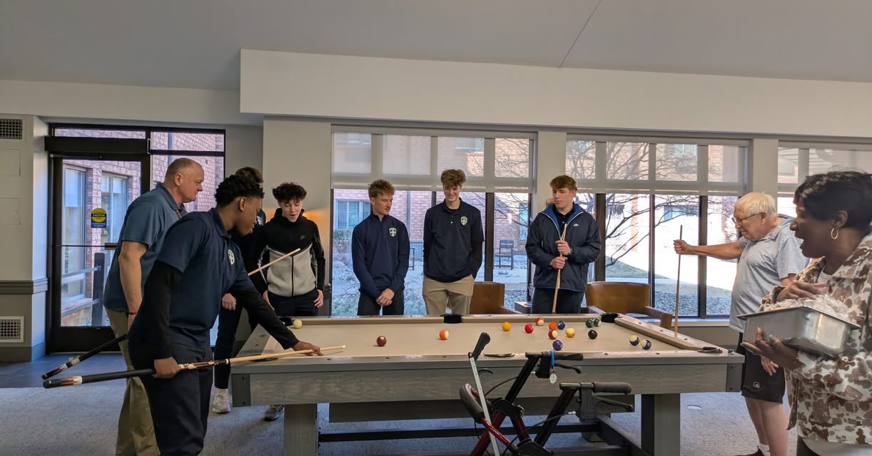 During House time throughout two weeks of February, students and staff from Marian House visited the residents at Independence Village Senior Living here in Peoria! The students had a wonderful time conversing with everyone, visiting during their lunch, and even playing pool! Thank you so much to Independence Village Senior Living for letting our students stop in.