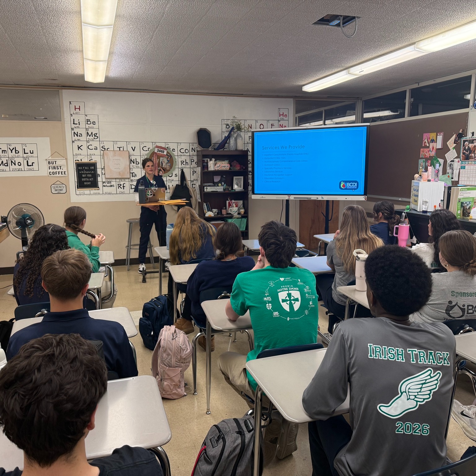 Brittney from the Blood & Clotting Disorders Institute of Peoria, IL talked to Mrs. Krieg-O’Brien’s Principle of Biomedical Science class last week! She provided excellent content about what they do and on possible medical careers there. Thank you, Brittney!