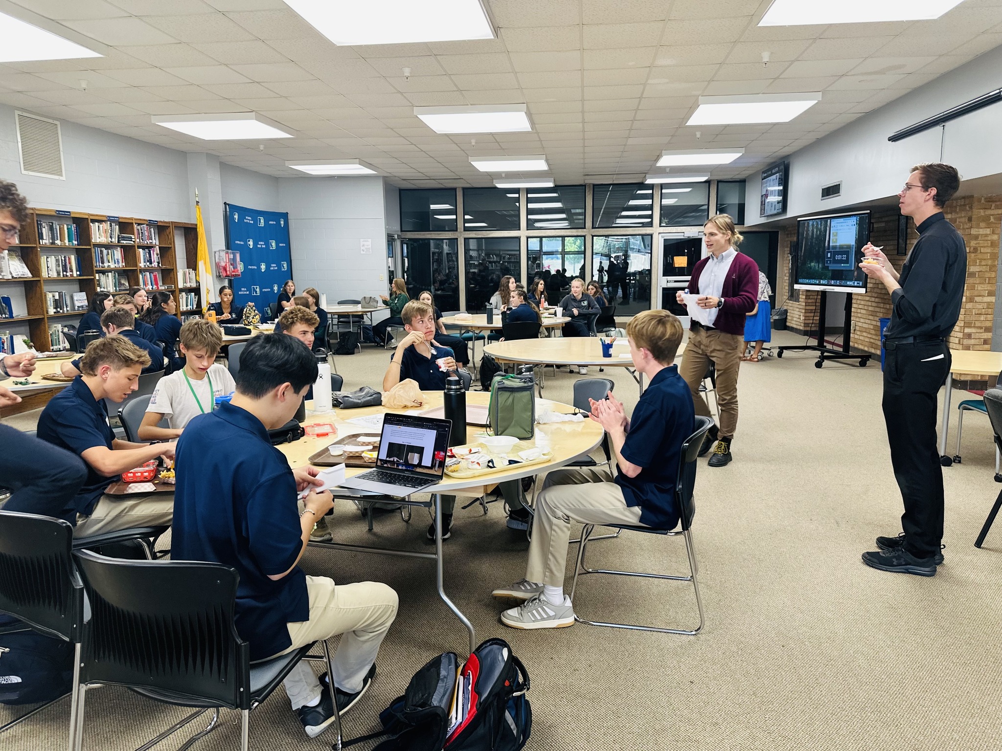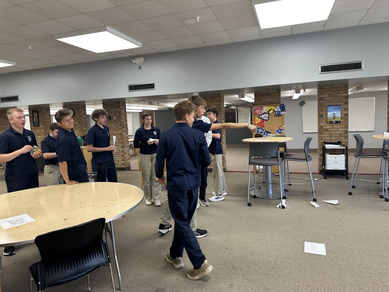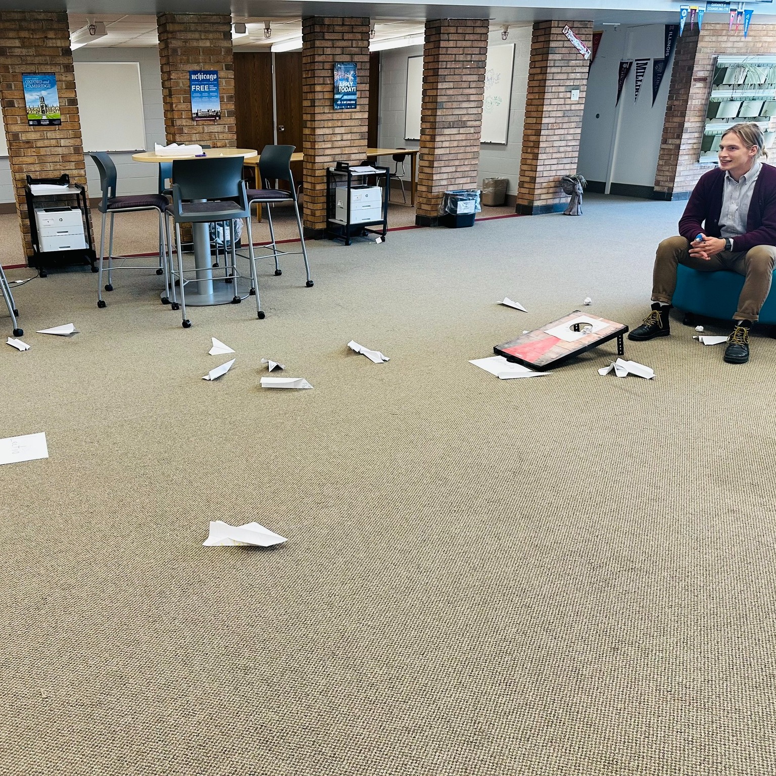 In Lumen Christi today, students made paper airplanes as a way to see St. Guigo’s “ladder of prayer” as a runway for prayer.