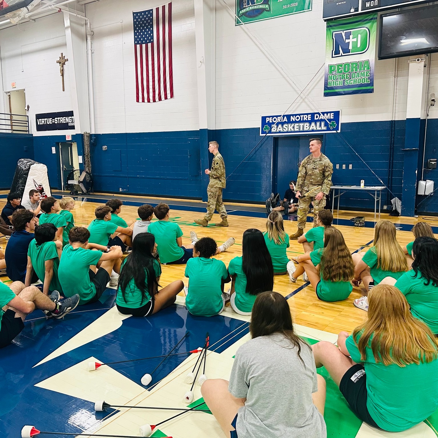 On, Tuesday, the Illinois National Guard joined our PE classes for Archery Tag! Twice a year, they bring this 10 vs. 10 game that follows dodgeball rules but uses foam-tipped arrows. Big thanks to Illinois National Guard for bringing the fun!