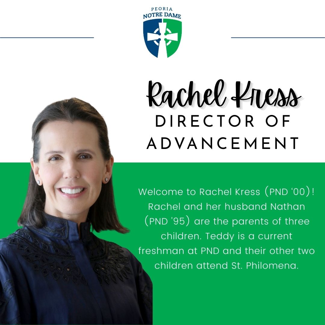 We are happy to announce that Rachel Kress (PND’00) has been hired to replace Cindy Dermody, our Director of Advancement, who will be retiring in June. Rachel started at PND today! Rachel and her husband Nathan (PND ’95) are the parents of three children. Teddy is a current freshman at PND and their other two children attend St. Philomena. In addition, Rachel’s mother taught art at PND in the past. Welcome, Rachel!