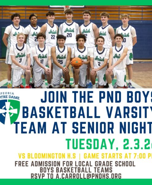 All local grade school basketball teams: Join us for our upcoming basketball senior nights! Lady Irish vs Richwoods High School this Friday, 1/30/26 at 7 PM PND Men’s Basketball vs...