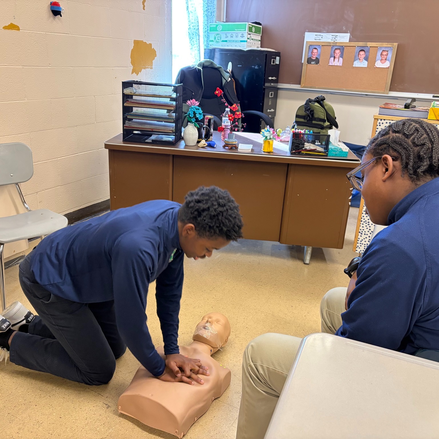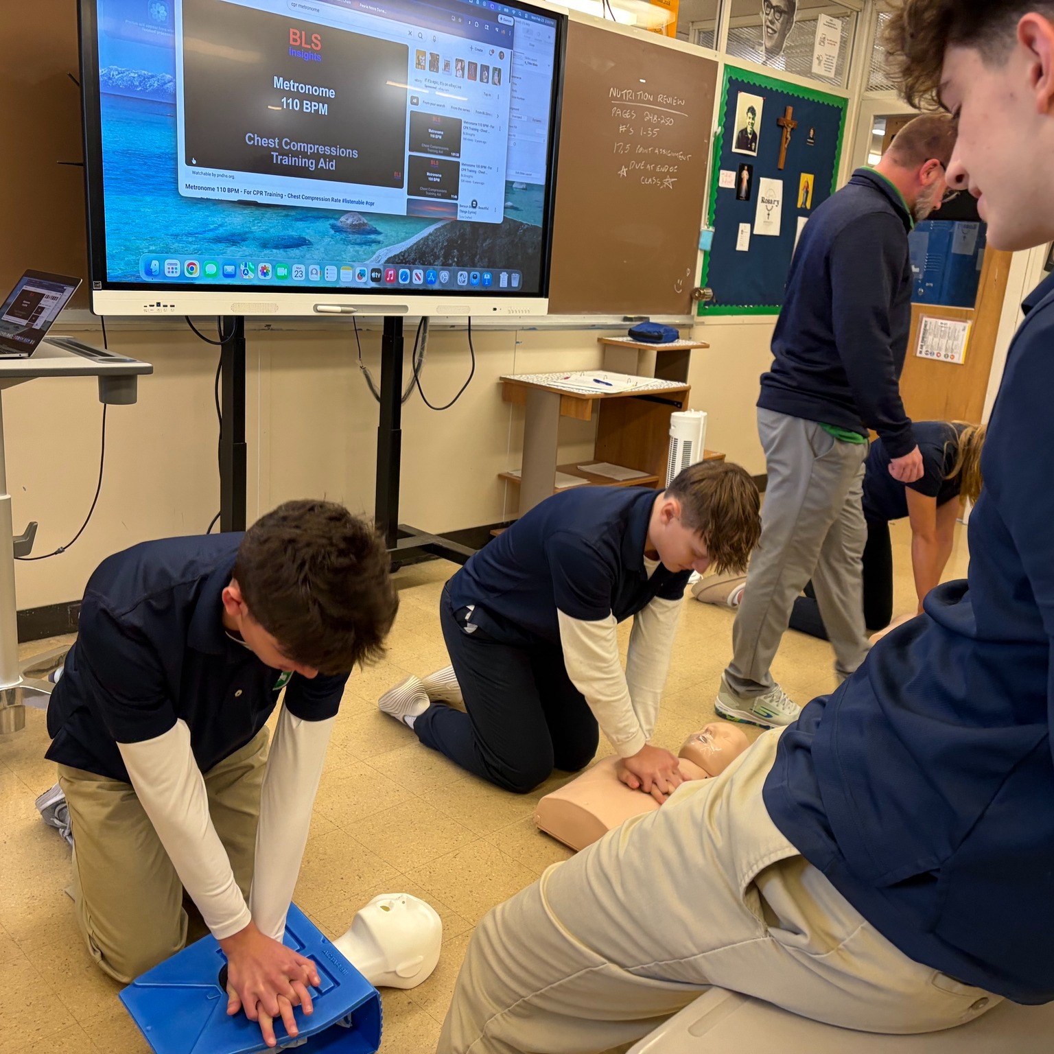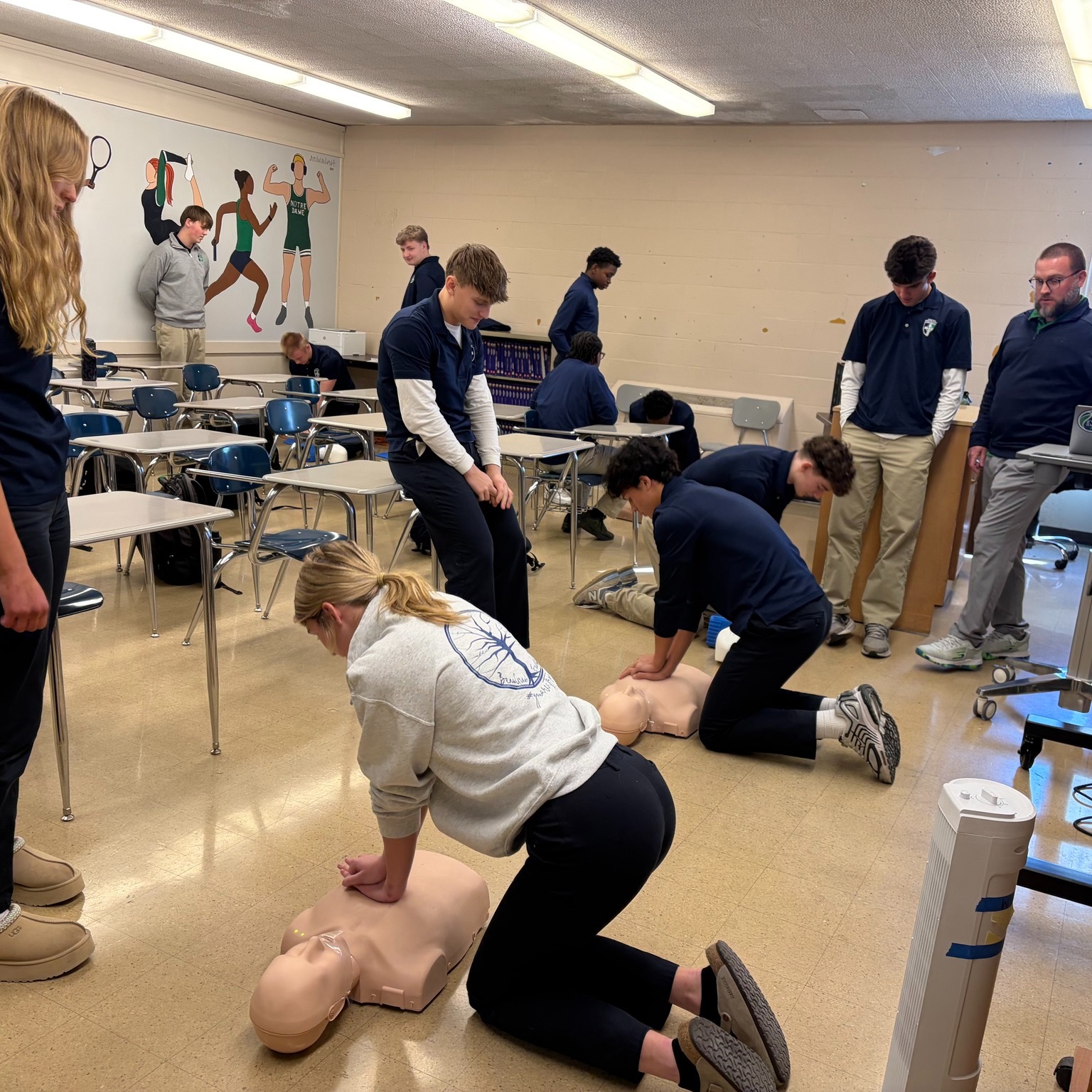 Mr. Lowder’s Health classes have been practicing CPR this week! The students are doing a great job with timing their chest compressions to the metronome sound and learning these life-saving measures!