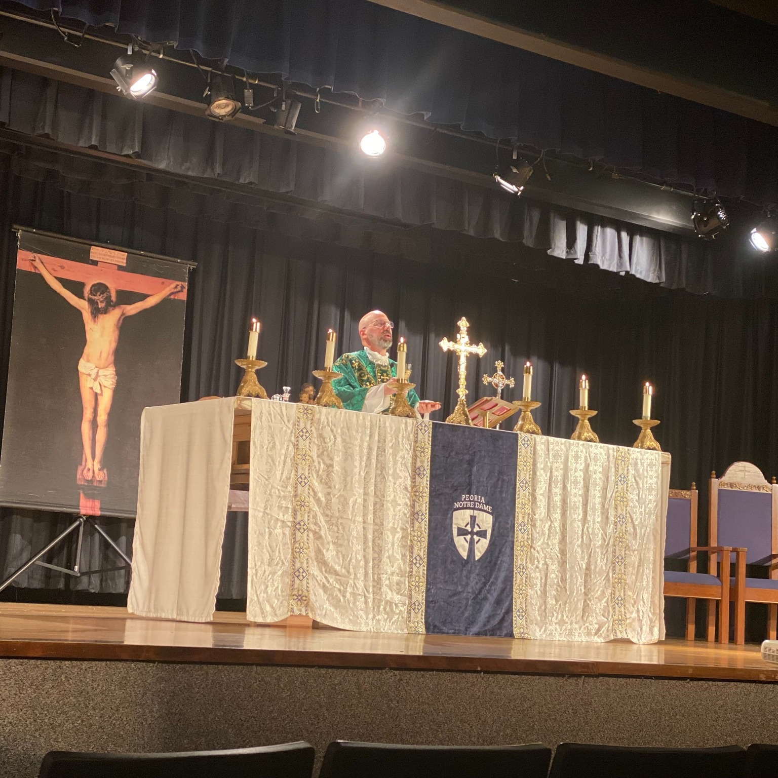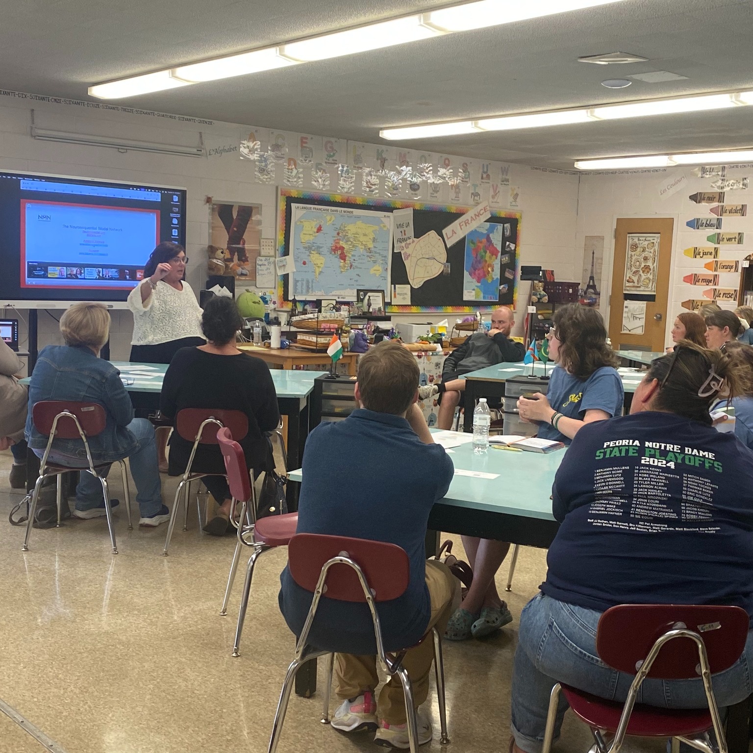 While our students had the day off, our Region 1 diocesan Faculty & Staff members had a great morning of faith formation and professional development here at PND. Fr. Charles Klamut celebrated Mass with everyone and then gave an outstanding talk on “Catholic Social Teaching.” Then, staff members moved into different sessions covering topics from Questioning Strategies; Stress, Trauma, & the Brain; Math Fluency; Cooperative Learning & Engagement; and AI.