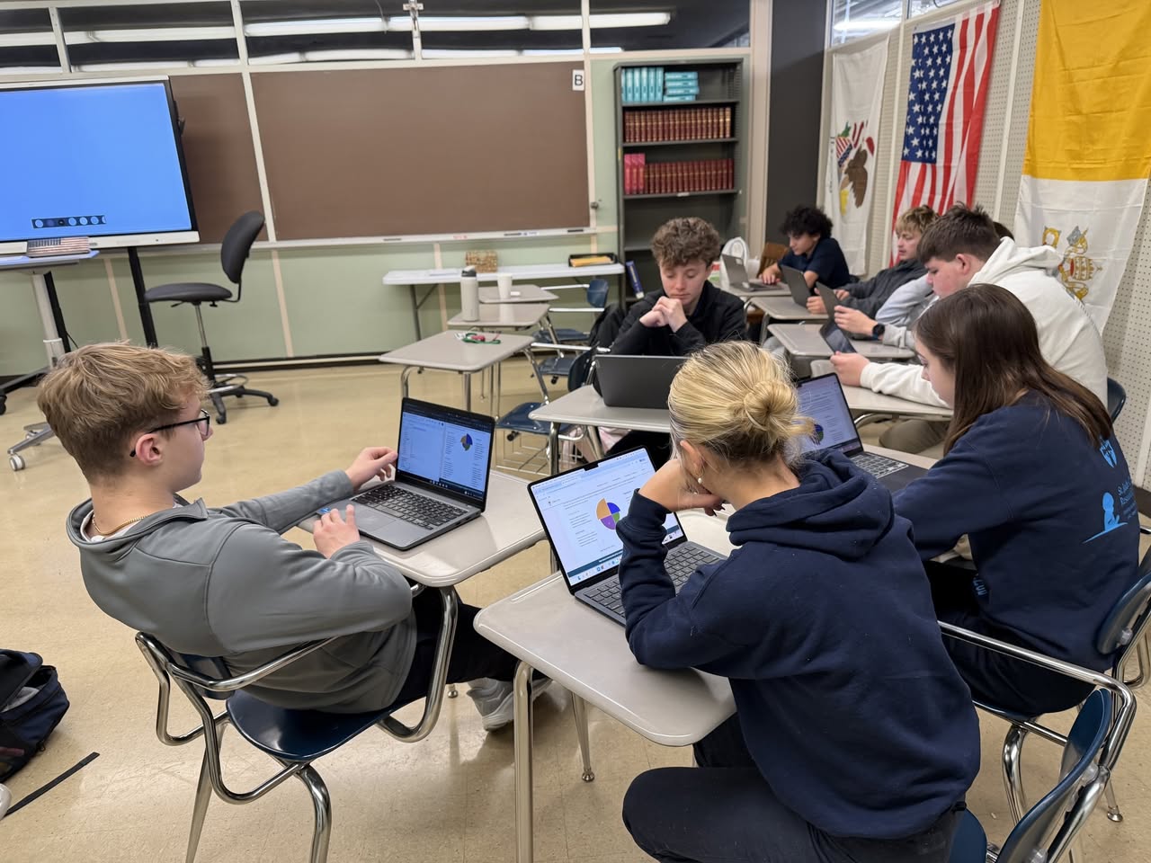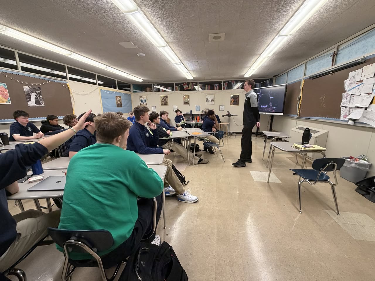 And Mrs. Baker’s Psychology Seminar class teachers and Fr. Daniel, joined as fake guest participants, presenting real-life symptoms and scenarios while students worked together to analyze what was happening and offer informed responses.